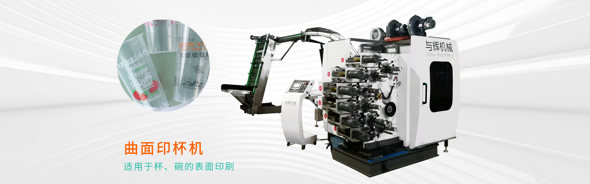 Wenzhou Yuhui Machinery Co., Ltd. is located in Pingyang County, Wenzhou City. It is a professional manufacturer that integrates the development and sales of curved cup printing equipment. At present, we mainly produce multi-color curved cup printing machines (3-8 colors for cups, bowls, and barrels) forming machines.